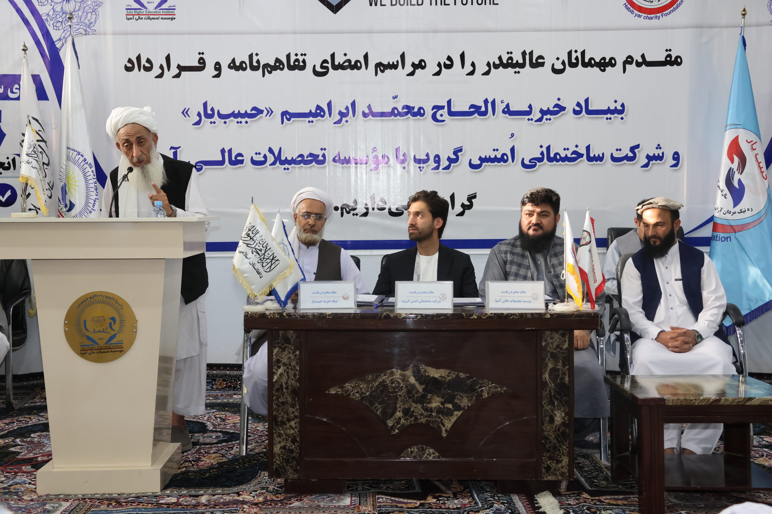 طی مراسمی با حضورداشت معاون مقام ولایت، رؤسای ادارات دولتی، مسئولان پوهنتونهای دولتی و خصوصی، تجار ملی، علمای کرام، نمایندگان سکتور خصوصی و شخصیتهای علمی و فرهنگی ولایت هرات، تفاهمنامهٔ یکصد بورسیهٔ رایگان چهارساله فی مابین بنیاد خیریهٔ حبیبیار و مؤسسهٔ تحصیلات عالی آسیا به امضا رسید.